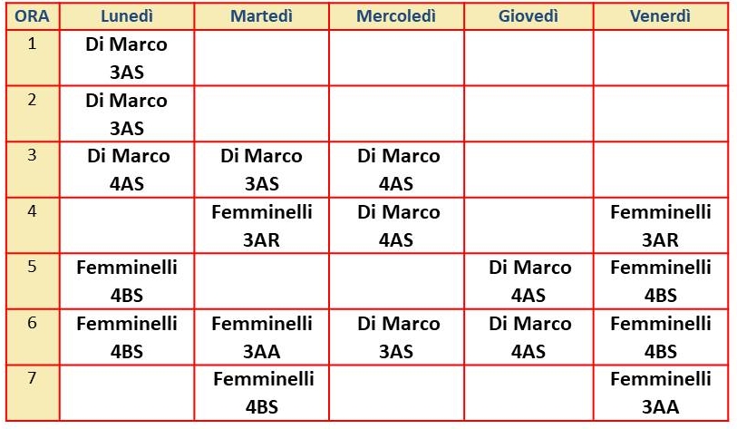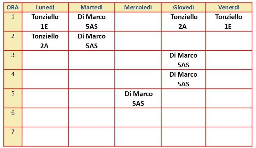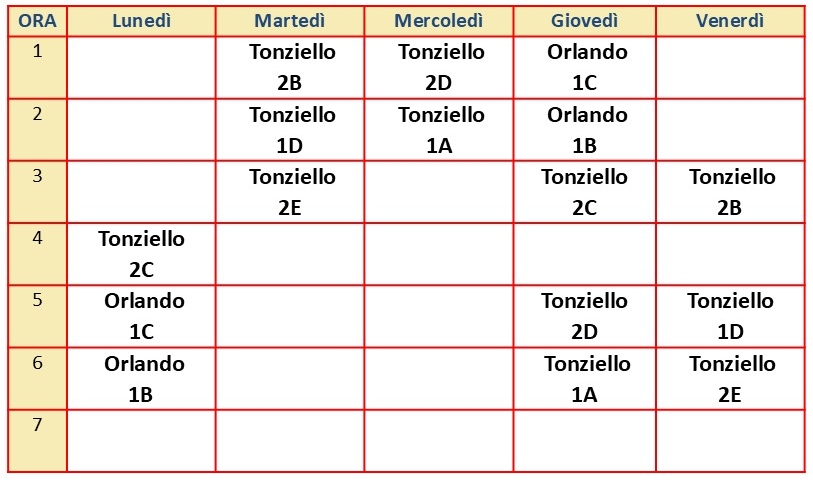 N. | PERIODO | Attività | Lunedì | Martedì | Mercoledì | Giovedì | Venerdì |